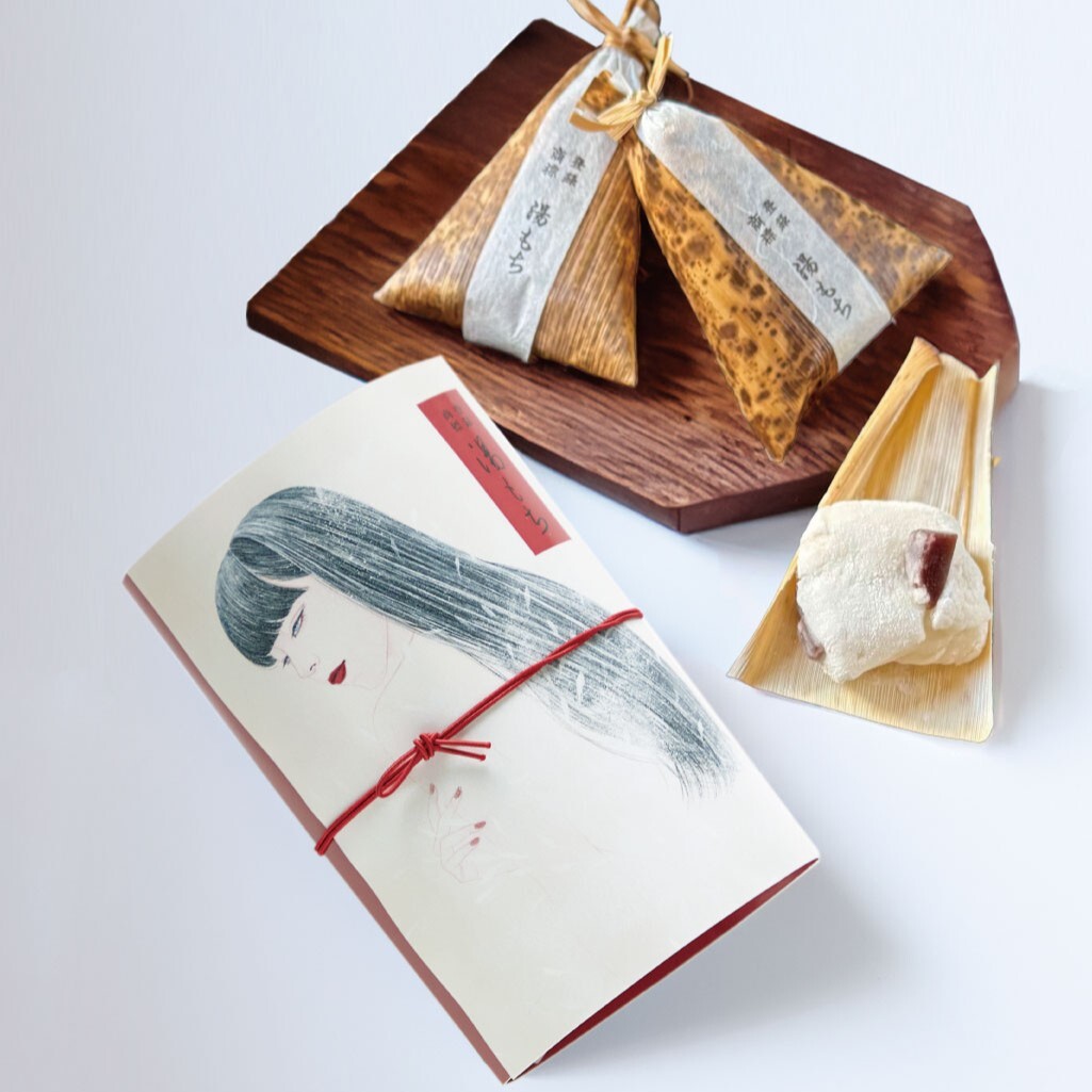 日本画家・丁子紅子氏が「やわはだ湯もち」のために描き上げた作品『香りと、』をあしらった、「湯もち3個入りプチギフト」を滝通り本店で数量限定販売いたします。